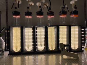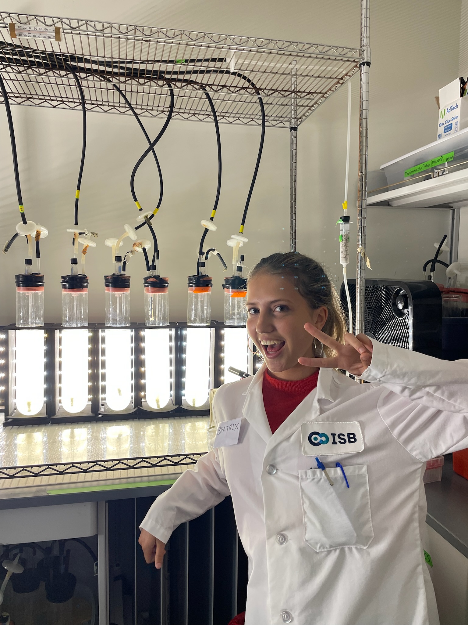 In parallel, we began designing primers, which are short single-stranded DNA that specifies which gene to amplify during PCR. We used a database created by the National Institute of Health, called Primer-BLAST, to find primers that had the potential to work. We also wanted to find orthologs (the same gene in another species) to see if the Na+(K+)/H+ antiporter also helps other diatoms be more resilient in high carbon conditions. We did this using the database created by EnsemblProtists and found many other diatoms with the antiporter. We decided to test Phaeodactylum tricornutum (Phaeo) and Fragilariopsis cylindrus (Frag) since we already had cultures of those diatoms and set them up to grow in high and low carbon conditions in mini-bioreactors.
