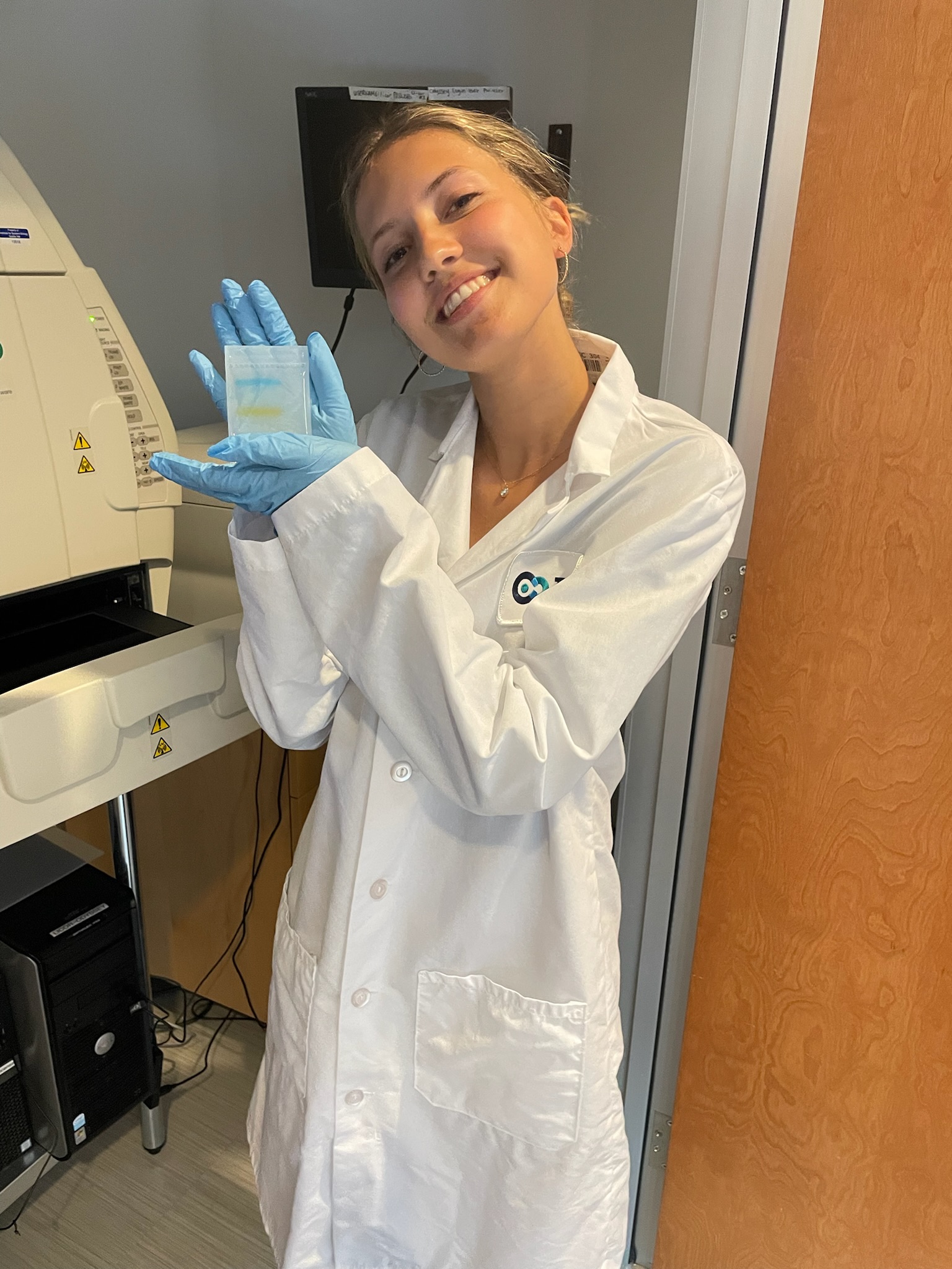 We tried doing a RT-qPCR three more times, however, each time we did it, we only got flat lines, meaning that the ThermoCycler wasn’t recording any fluorescence. Since we knew that there should be at least some fluorescence due to the previous RT-qPCR and other studies, there had to be something wrong with how we were doing the experiment itself. After trying the RT-qPCR with new RNA and new cDNA, we decided to do a gel electrophoresis on one of the failed PCR products to see if lack of amplification or lack of measurement was the issue. The gel electrophoresis was our most successful one yet, and since other people had successfully done RT-qPCRs on the ThermoCycler while we were troubleshooting, we knew the machine was working properly. Because of this, we were able to determine that the fluorescent dye in our SyberGreen Master Mix wasn’t working.